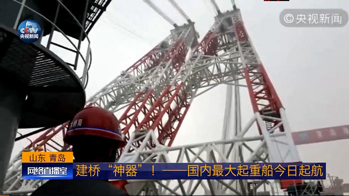1月9日,由中鐵大橋局投資建造的“大橋海鷗”號起重船在青島海西重機碼頭完成交付,這是繼“德浮3600噸浮吊”之后,海西重機交付的又一臺起重設備。央視新聞進(jìn)行了全程跟蹤報道。