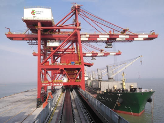 日前,由海西重機制造的中電投江蘇濱海港3臺1800t/h橋式抓斗卸船機順利完成“首秀”。