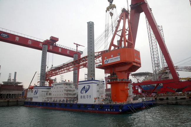 我是一座起重機,是重型船用起重機械設備家族中的重要一員,我是海西重機為天津港航工程有限公司的港航平9起重船量身打造的,我的臂架長(cháng)達103米,可以將最大重量為1200噸的重物,起升到可達110米的高度,而且可以360度旋轉。我就是全回轉浮式起重機,是我國海上風(fēng)電安裝作業(yè)走向近海必不可少的重要利器。