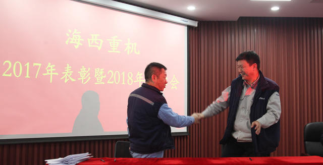 會(huì )議簽署了海西重機2018年方針目標,確定了“全面貫徹黨的十九大精神,以高質(zhì)量發(fā)展為中心,以提質(zhì)增效為重點(diǎn),聚焦產(chǎn)品的提檔升級,提高企業(yè)競爭力,實(shí)現由生產(chǎn)型制造企業(yè)向服務(wù)型制造企業(yè)的轉型”的年度總方針,明確了新一年發(fā)展的目標任務(wù)。會(huì )議組織簽署了《黨風(fēng)廉政建設責任書(shū)》,明確了公司領(lǐng)導班子及各部門(mén)領(lǐng)導班子在黨風(fēng)廉潔建設中的責任與目標。會(huì )議表彰了公司2017年生產(chǎn)經(jīng)營(yíng)發(fā)展中涌現出的5名“優(yōu)秀管理者”及50名“優(yōu)秀員工”。