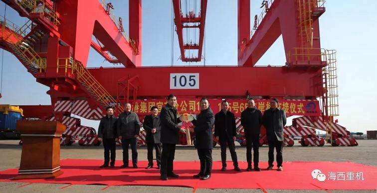 12月28日,由海西重機建造的2臺65噸岸橋交接暨列編儀式在上港集團宜東集裝箱碼頭分公司隆重舉行。上港集團宜東集裝箱碼頭分公司總經(jīng)理倪志平,黨委書(shū)記陳波,副總經(jīng)理廖勝前,黨委副書(shū)記、紀委書(shū)記、工會(huì )主席李軍,青島海西重機有限責任公司黨委副書(shū)記、總經(jīng)理張懷志,副總經(jīng)理代振華等出席儀式。