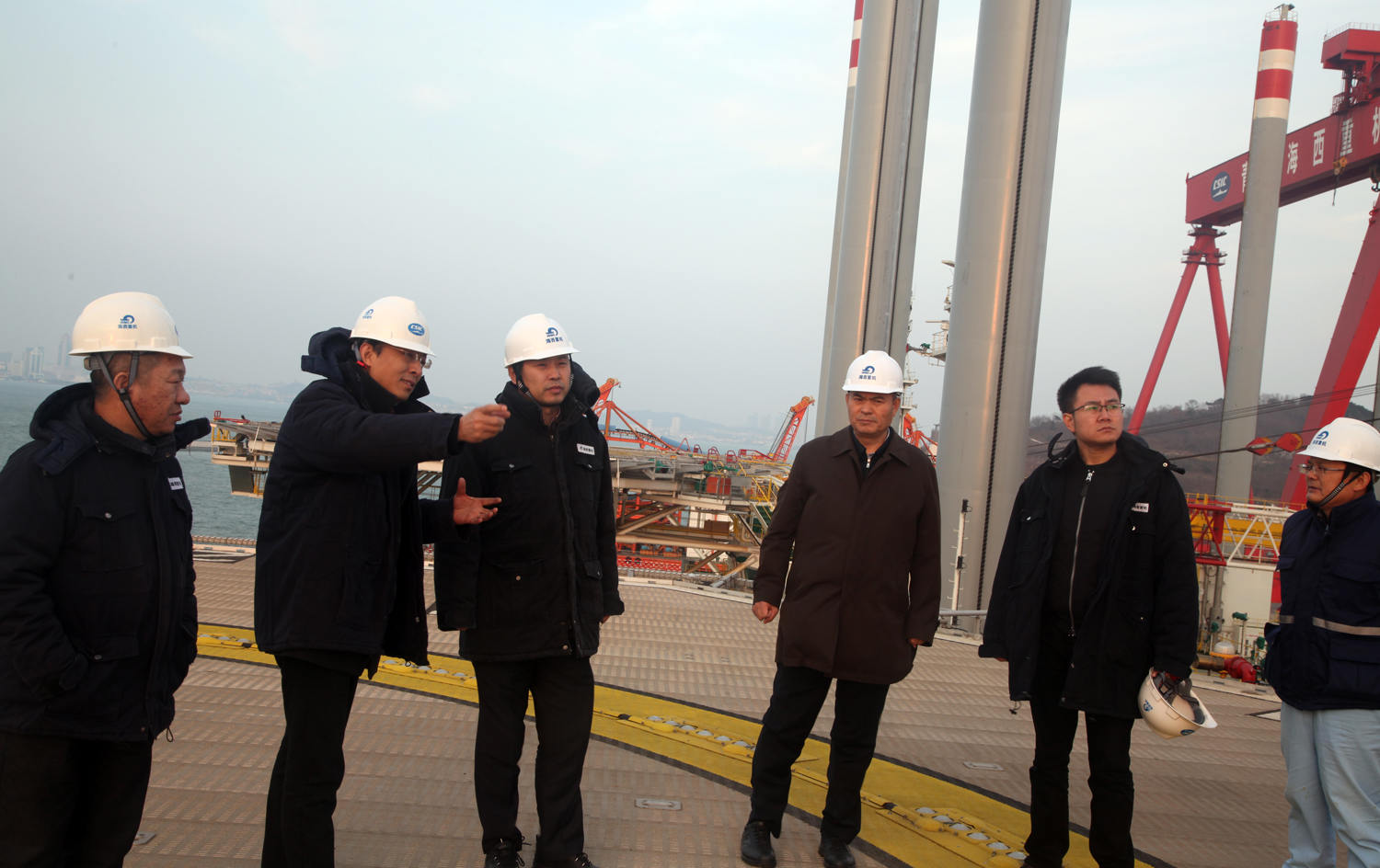 馮永強一行參觀(guān)了公司總裝碼頭,登上了公司建造的自升式海工平臺,仔細聽(tīng)取了武漢總部黨委書(shū)記、董事長(cháng)馬聚勇對武漢船機海西重機發(fā)展歷程、主營(yíng)業(yè)務(wù)、戰略定位以及生產(chǎn)經(jīng)營(yíng)形勢等方面的介紹。