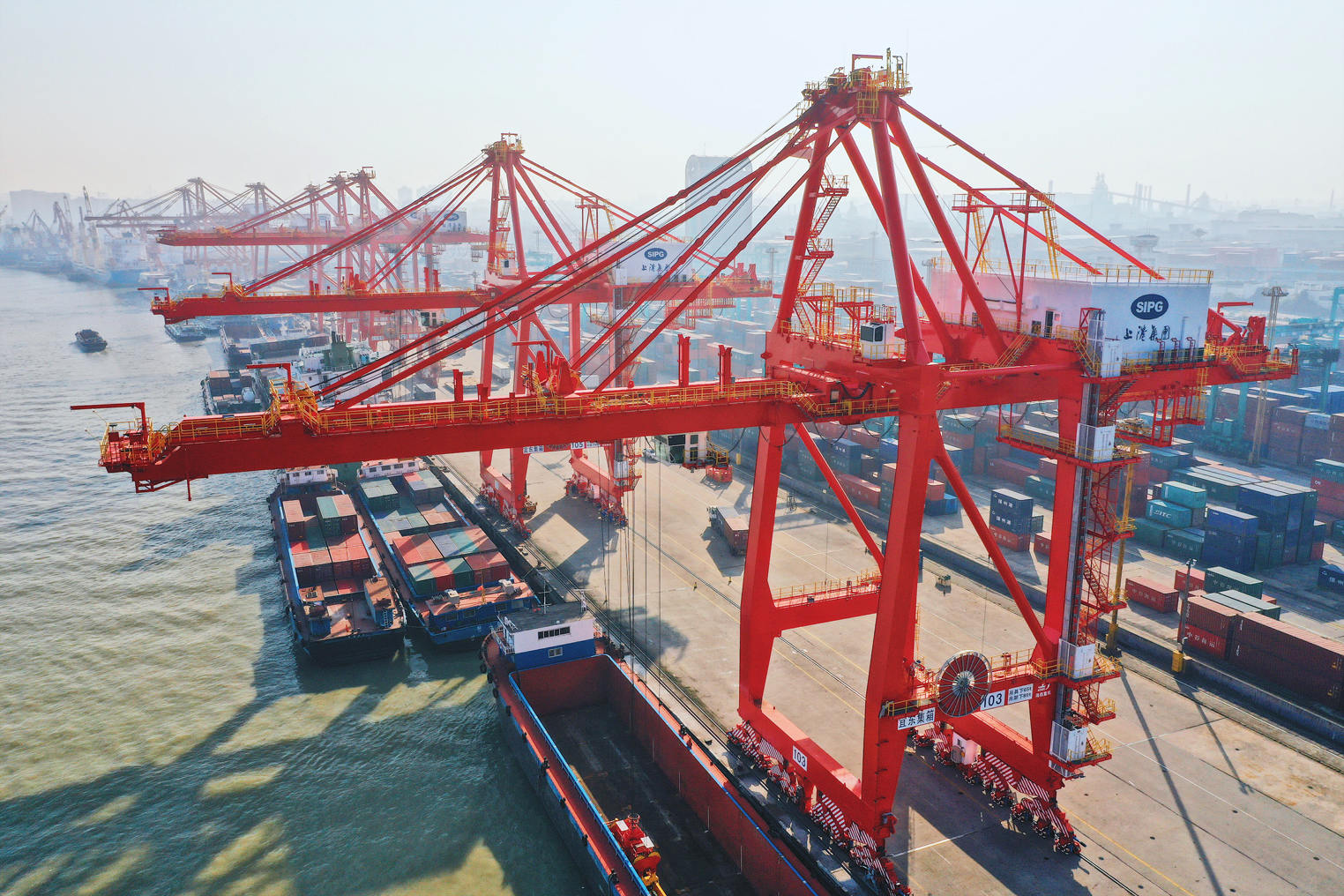 12月18日,海西重機為上港集團宜東集裝箱碼頭分公司制造的2臺65t-38m岸橋順利交付。