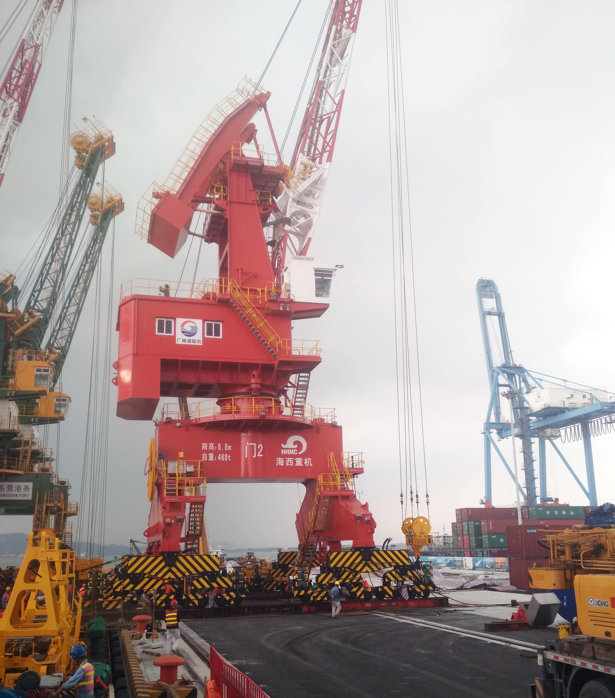 滿(mǎn)滿(mǎn)的一船門(mén)機。3月19日,我司分別為廣州港股份有限公司黃埔港務(wù)分公司、廣州港股份有限公司新沙港務(wù)有限公司、東莞市虎門(mén)港駁船碼頭有限公司制造的各2臺門(mén)機(共6臺)在海西重機的生產(chǎn)碼頭同船順利發(fā)運。3月26日,運輸船安全抵達黃埔港,一場(chǎng)卸船攻堅戰就此展開(kāi)。