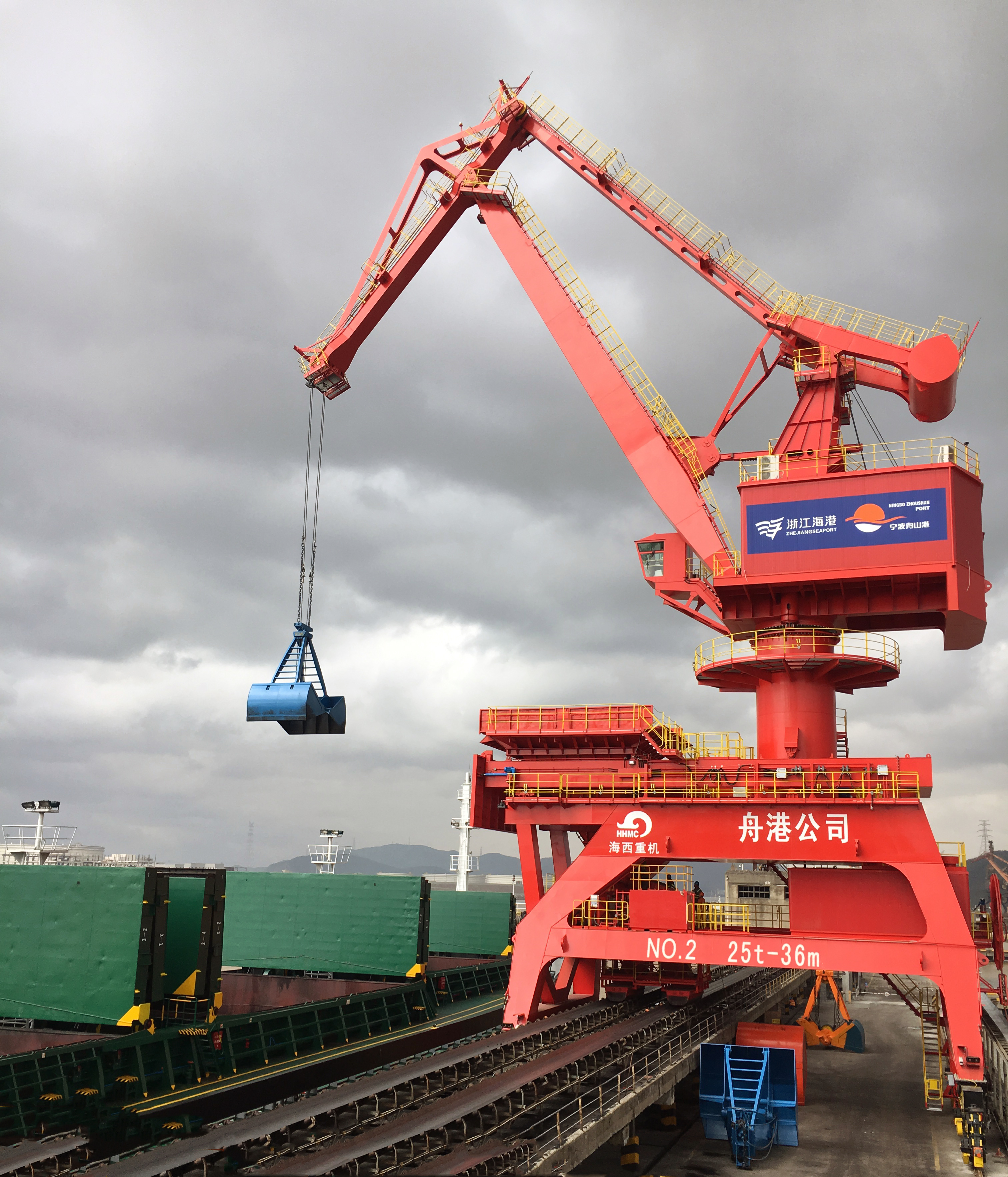 5月12日,武漢船機海西重機為寧波舟山港老塘山碼頭打造的2臺25T-36M帶斗門(mén)機順利交付。