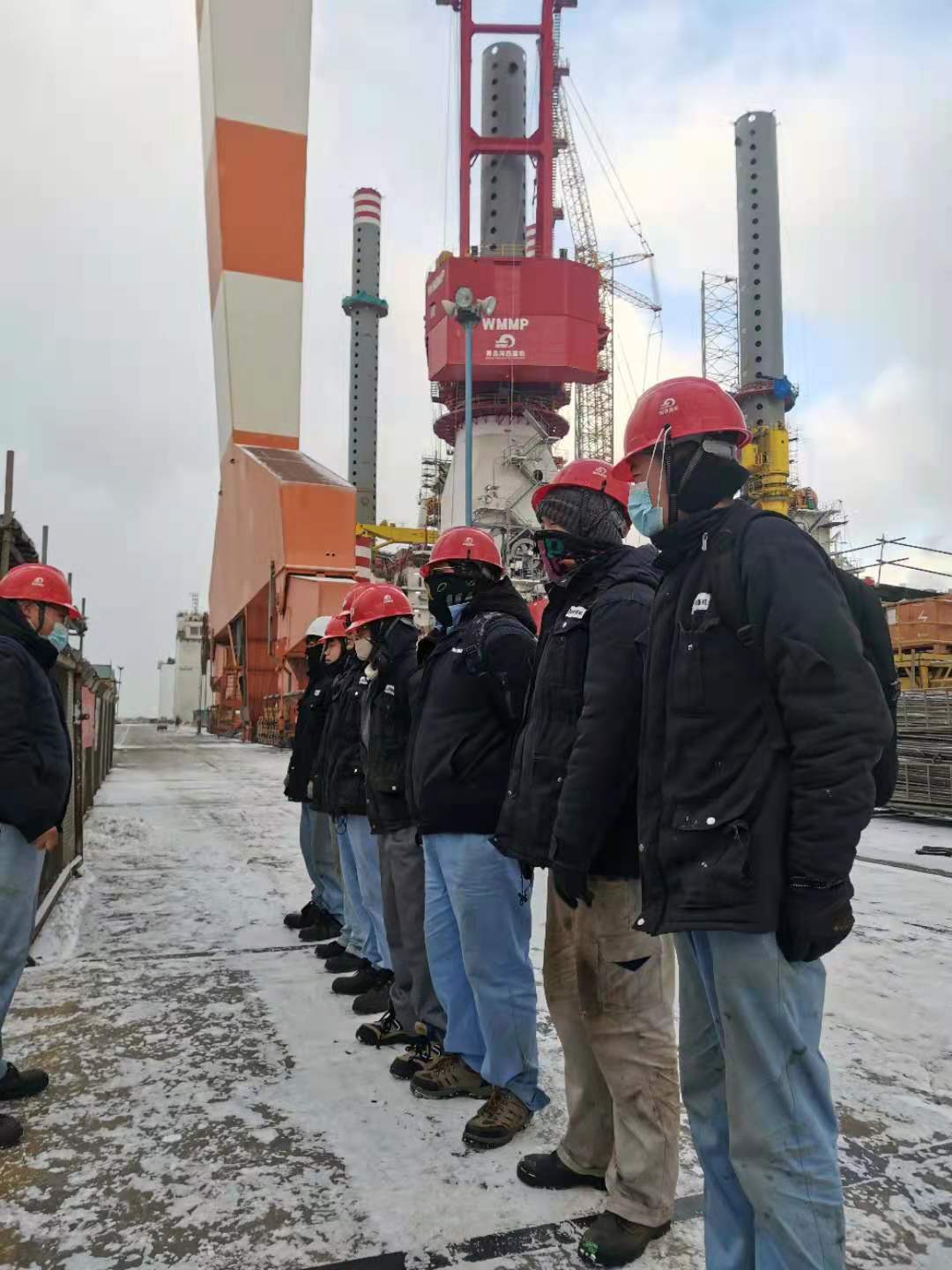 1月7日,山東經(jīng)歷了一次罕見(jiàn)的寒潮,煙臺下起了雪,這是第二場(chǎng)雪,也是我們要克服的又一個(gè)惡劣天氣,寒風(fēng)里摻雜著(zhù)雪,氣溫也是零下好幾度。一如既往的早班會(huì ),特意強調一下安全,然后根據現場(chǎng)情況,交代好工作,我們就整裝上陣,開(kāi)始一天工作?,F場(chǎng)的問(wèn)題在一個(gè)一個(gè)解決,堅定了我們的信心。我常常鼓勵大家,“咱們再辛苦辛苦,早日結束?!标犛褌円矔?huì )簡(jiǎn)單回一句暖心的話(huà),“這都不是事,我們都想早點(diǎn)干完?!?/span>