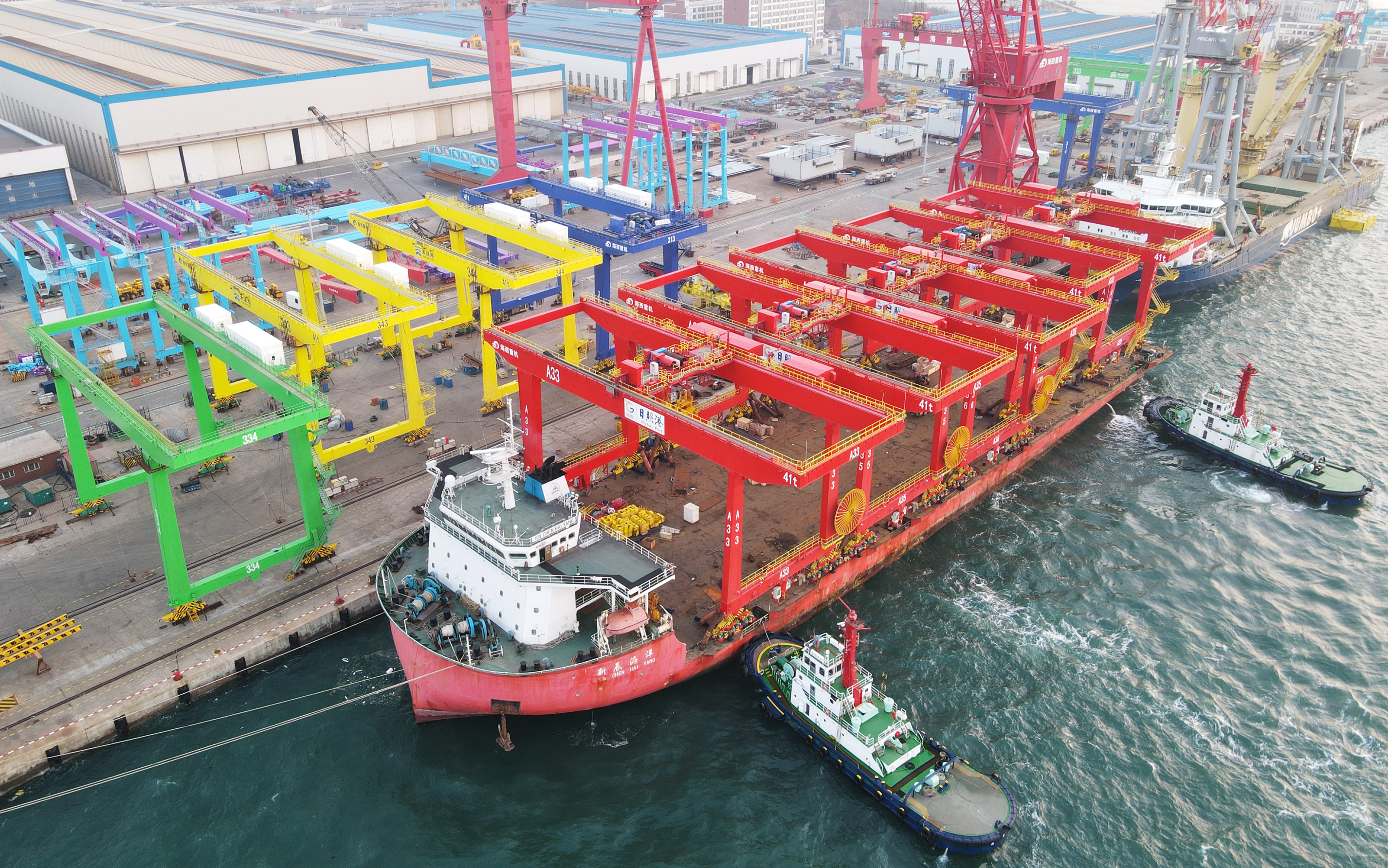 2月2日下午,中國船舶集團旗下武漢船機海西重機公司為日照港集裝箱自動(dòng)化堆場(chǎng)三期項目打造的第四批5臺自動(dòng)化軌道吊順利到港,至此該項目16臺設備全部完成廠(chǎng)內制作。