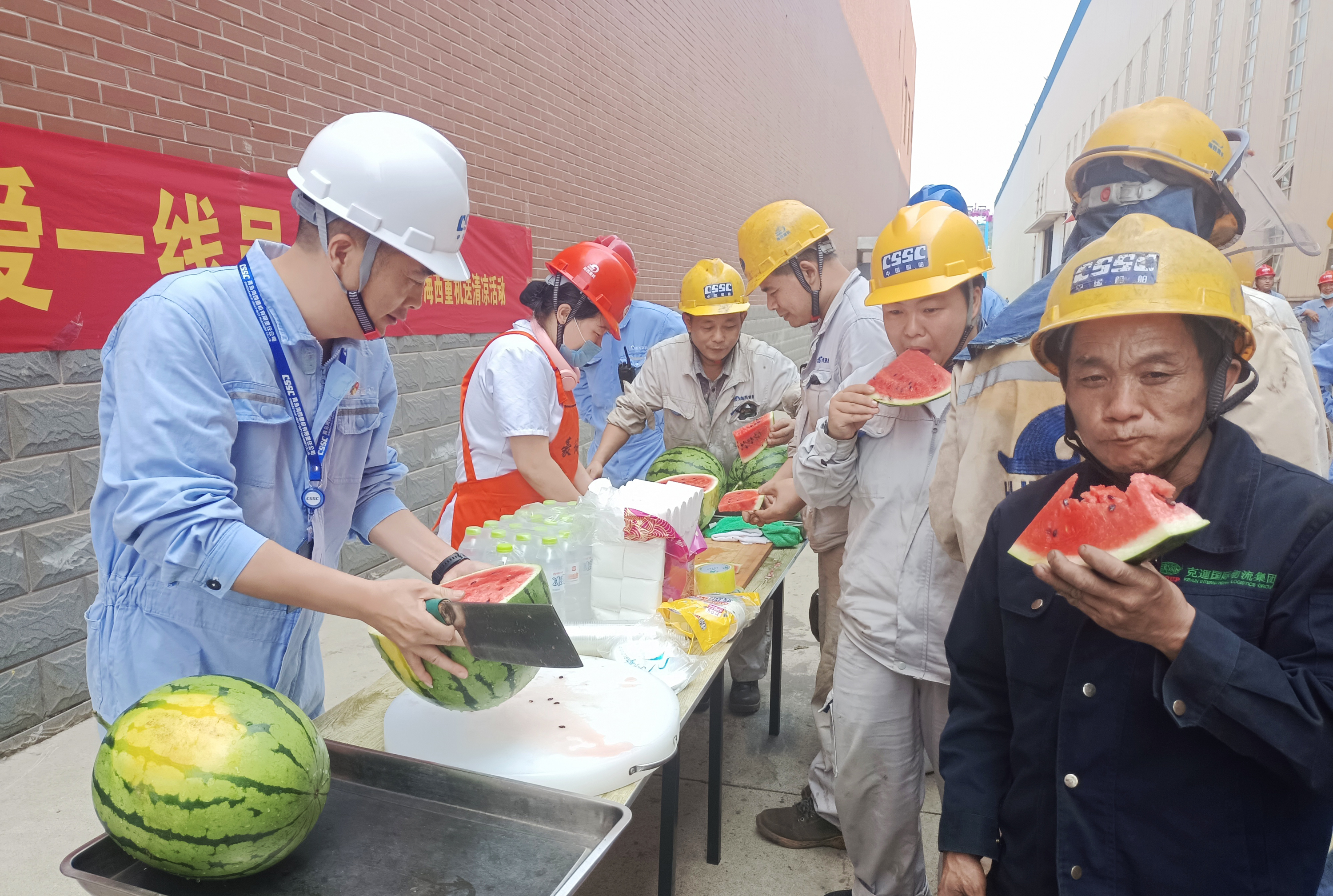 “西瓜真甜,感謝公司的關(guān)愛(ài),我們會(huì )更加努力,戰酷暑、搶節點(diǎn),更好地保障生產(chǎn)?!变摌嬛圃觳眶秆b工人董學(xué)輝開(kāi)心地說(shuō)到。