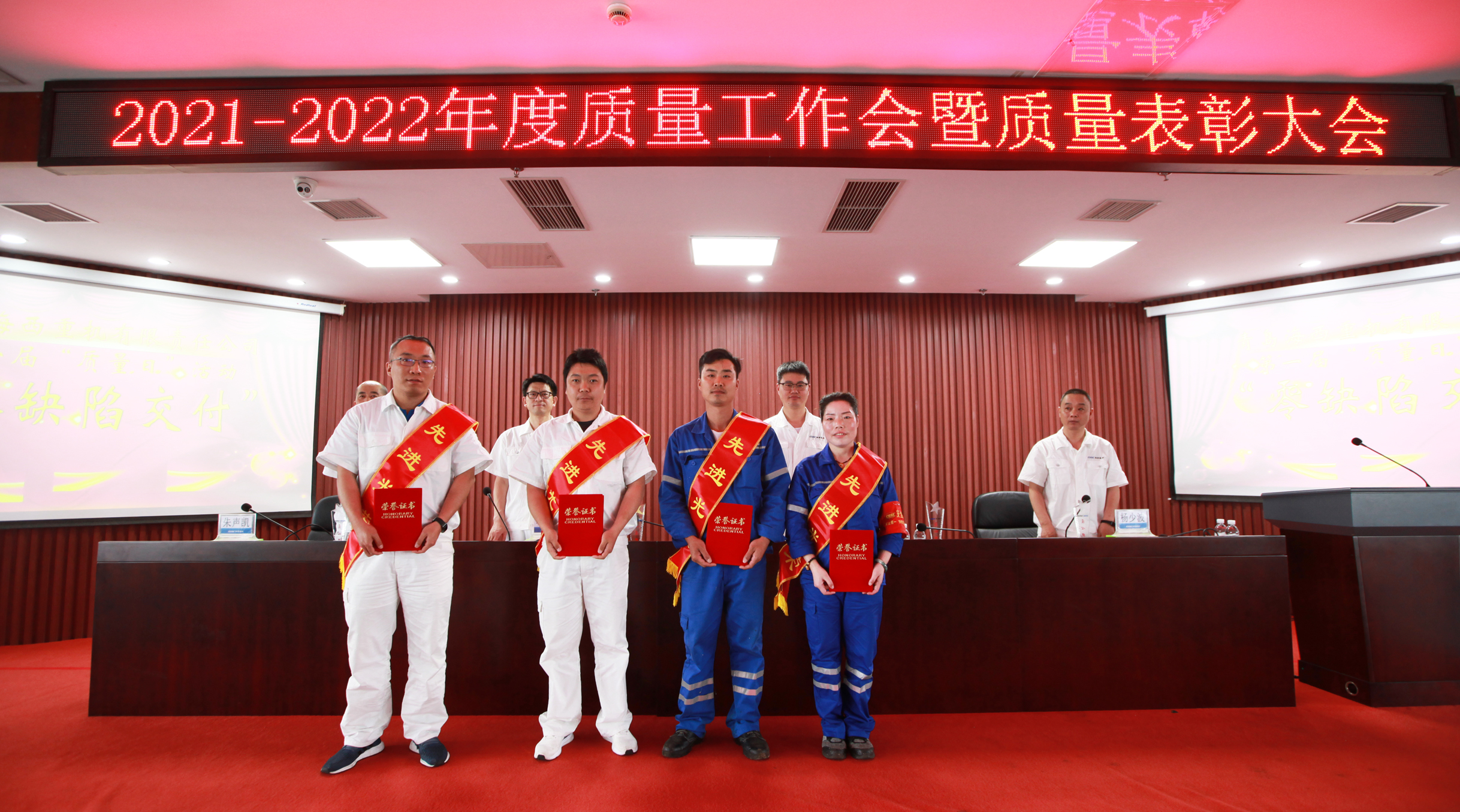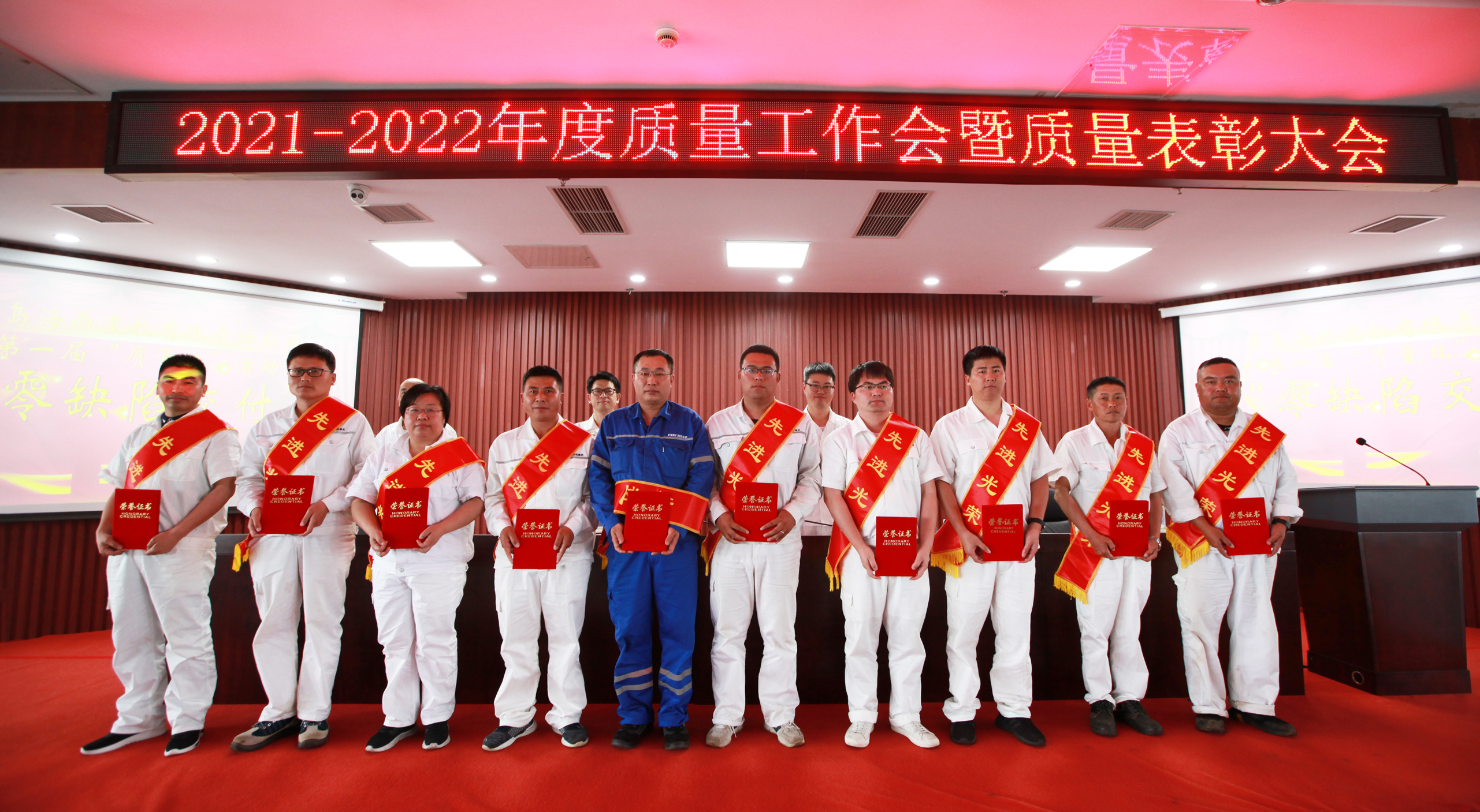 6月22日,中國船舶集團旗下武漢船機海西重機公司2021-2022年度質(zhì)量工作會(huì )暨質(zhì)量表彰大會(huì )在901會(huì )議室隆重召開(kāi)。公司黨委書(shū)記、董事長(cháng)李儒新,黨委副書(shū)記、總經(jīng)理蔣新標,黨委副書(shū)記、紀委書(shū)記朱聲凱,副總經(jīng)理楊少波出席會(huì )議,公司各部門(mén)負責人、各協(xié)理公司代表、質(zhì)量先進(jìn)個(gè)人、質(zhì)量先進(jìn)班組參加了大會(huì )。大會(huì )對質(zhì)量先進(jìn)個(gè)人、質(zhì)量先進(jìn)班組、工匠獎、匠心獎獲得者進(jìn)行了表彰與頒獎。