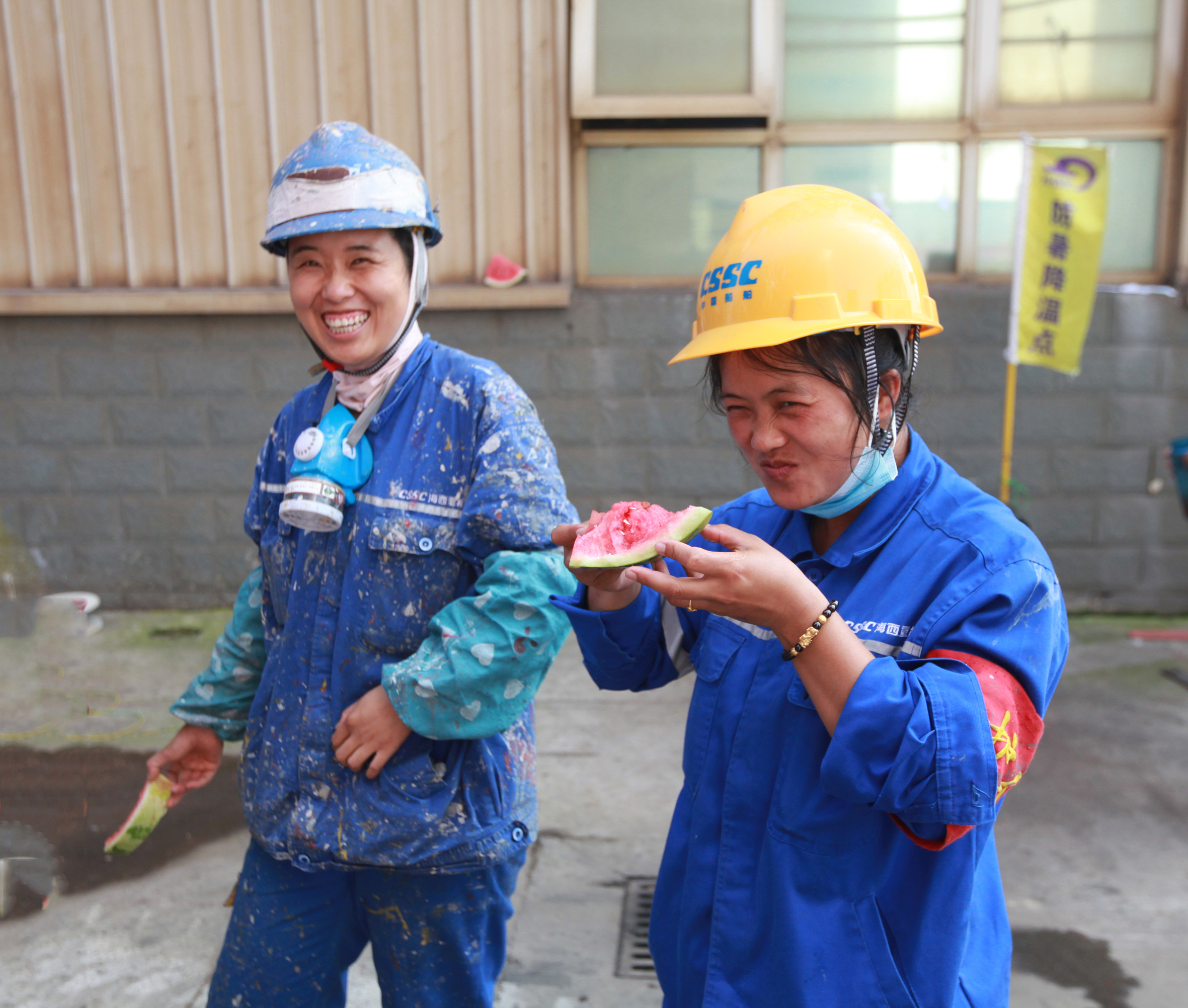 武漢船機總會(huì )計師、工會(huì )主席陳世龍,海西重機黨委副書(shū)記、紀委書(shū)記、工會(huì )主席朱聲凱等到生產(chǎn)現場(chǎng)開(kāi)展慰問(wèn),為大家送上了鮮甜解暑的西瓜,對現場(chǎng)一線(xiàn)員工的辛勤付出表示感謝,叮囑大家高溫高濕天氣下要加強自我保護,合理安排作息,確保平安度夏。