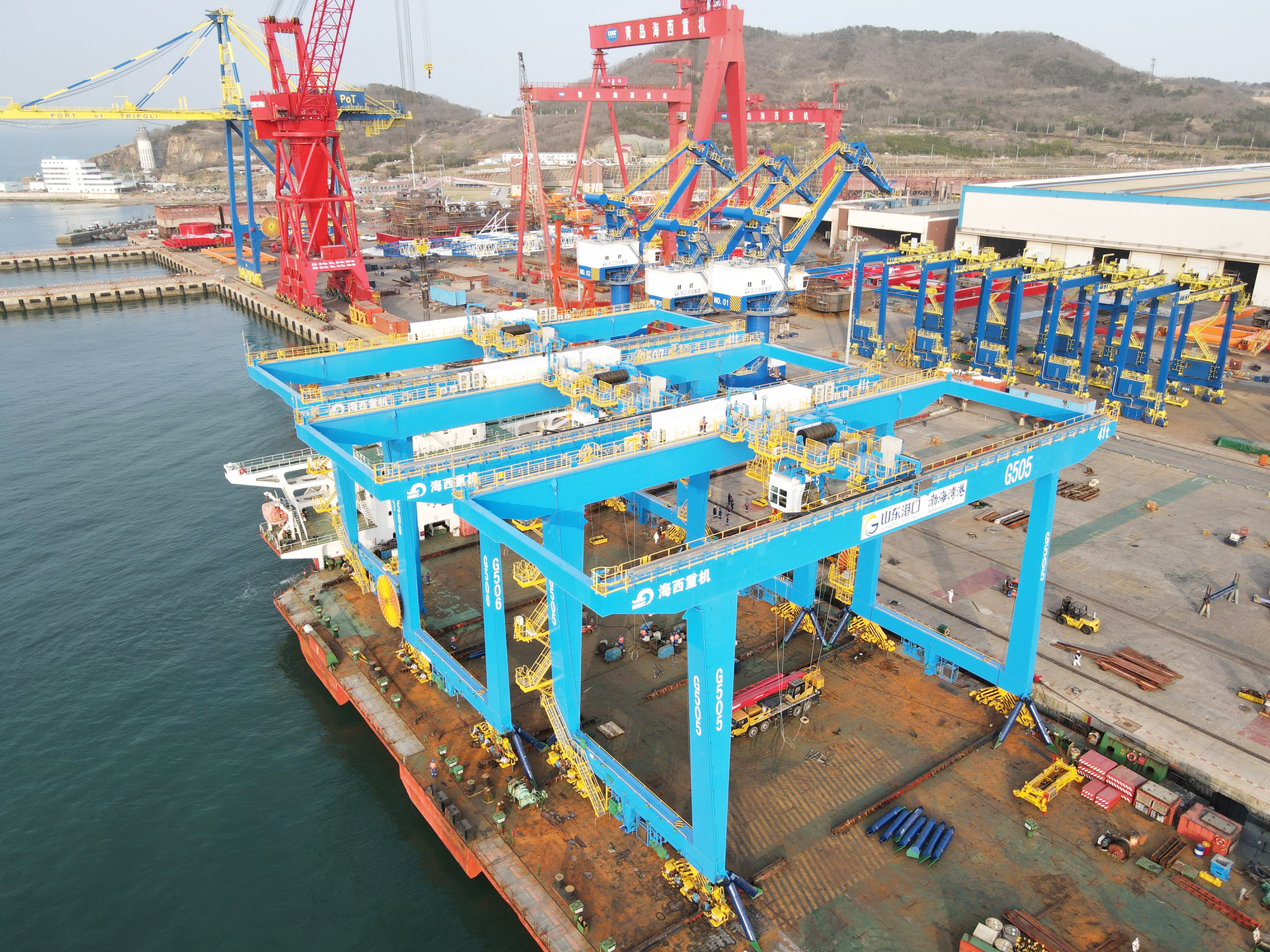 4月14日,中國船舶集團旗下武漢船機海西重機公司為山東港口濰坊港打造的3臺41t-37m自動(dòng)化軌道吊順利發(fā)運。