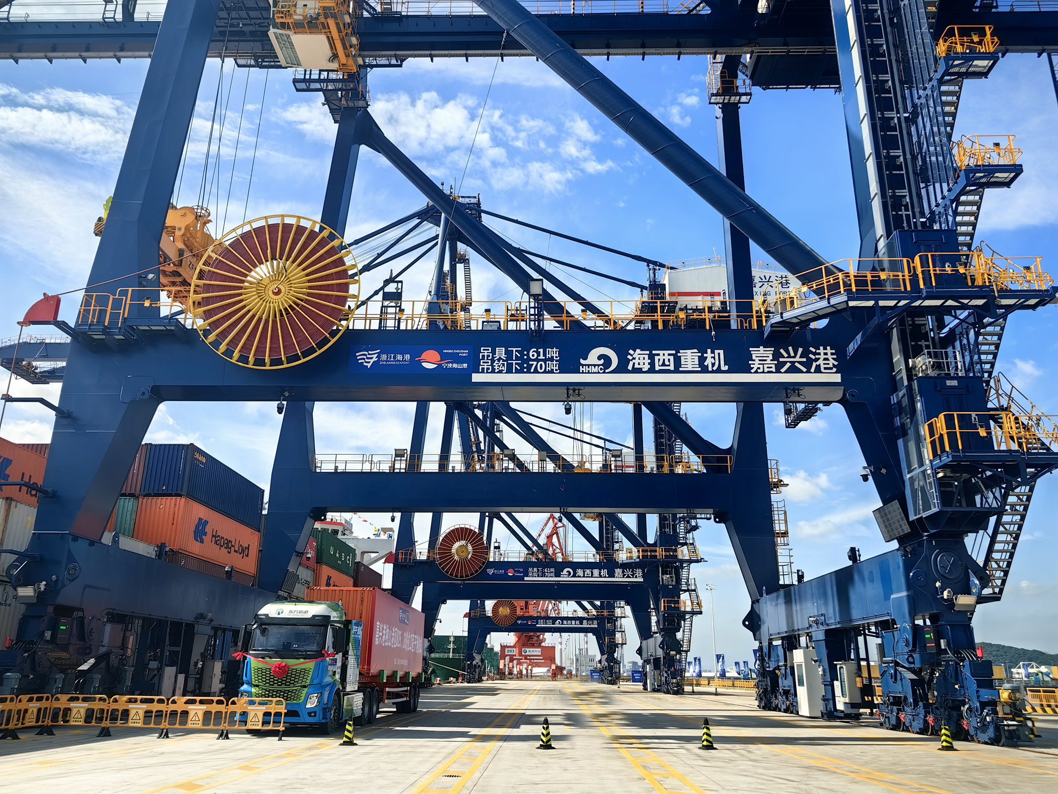 今年,海西重機連續為浙江省海港集團、寧波舟山港集團嘉興港打造了6臺具有遠程自動(dòng)化控制功能的岸橋,該批設備吊具下額定起重量61噸,前伸距43米,配備起重機狀態(tài)監測系統、稱(chēng)重系統、自動(dòng)消防系統等多種安全保護裝置及光伏系統、能量回饋系統等節能裝置,使用起來(lái)安全高效、綠色環(huán)保,可進(jìn)一步提升港區的裝卸能力和服務(wù)水平,為港口的高質(zhì)量發(fā)展賦能。