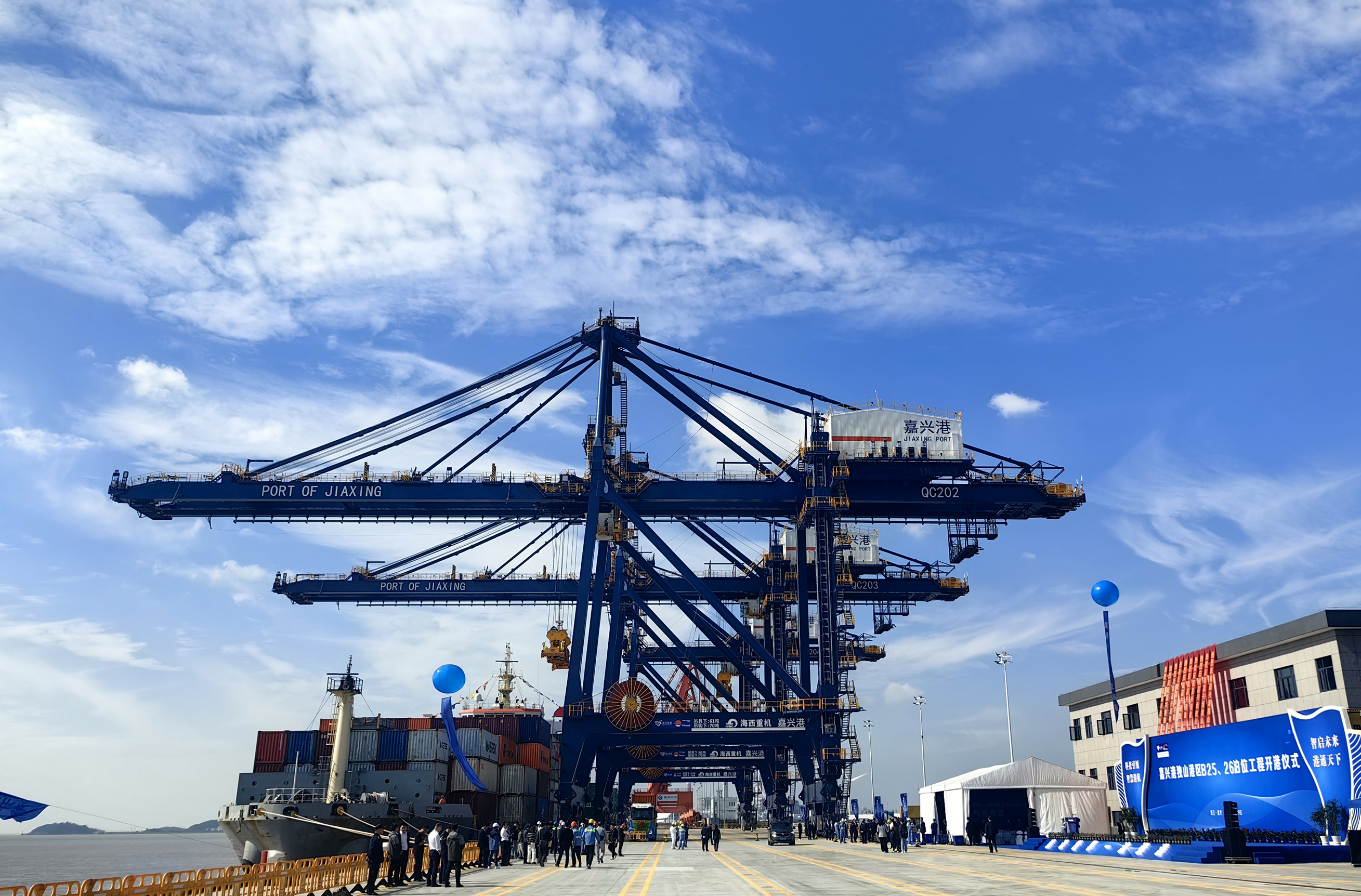 10月29日上午,浙江省海港集團、寧波舟山港集團嘉興港獨山港區B25、26泊位和Ⅱ號內河港池開(kāi)港儀式舉行。這標志著(zhù)嘉興港又一個(gè)萬(wàn)噸級碼頭和海河聯(lián)運作業(yè)區正式投入使用。海西重機作為項目參建單位參加儀式。