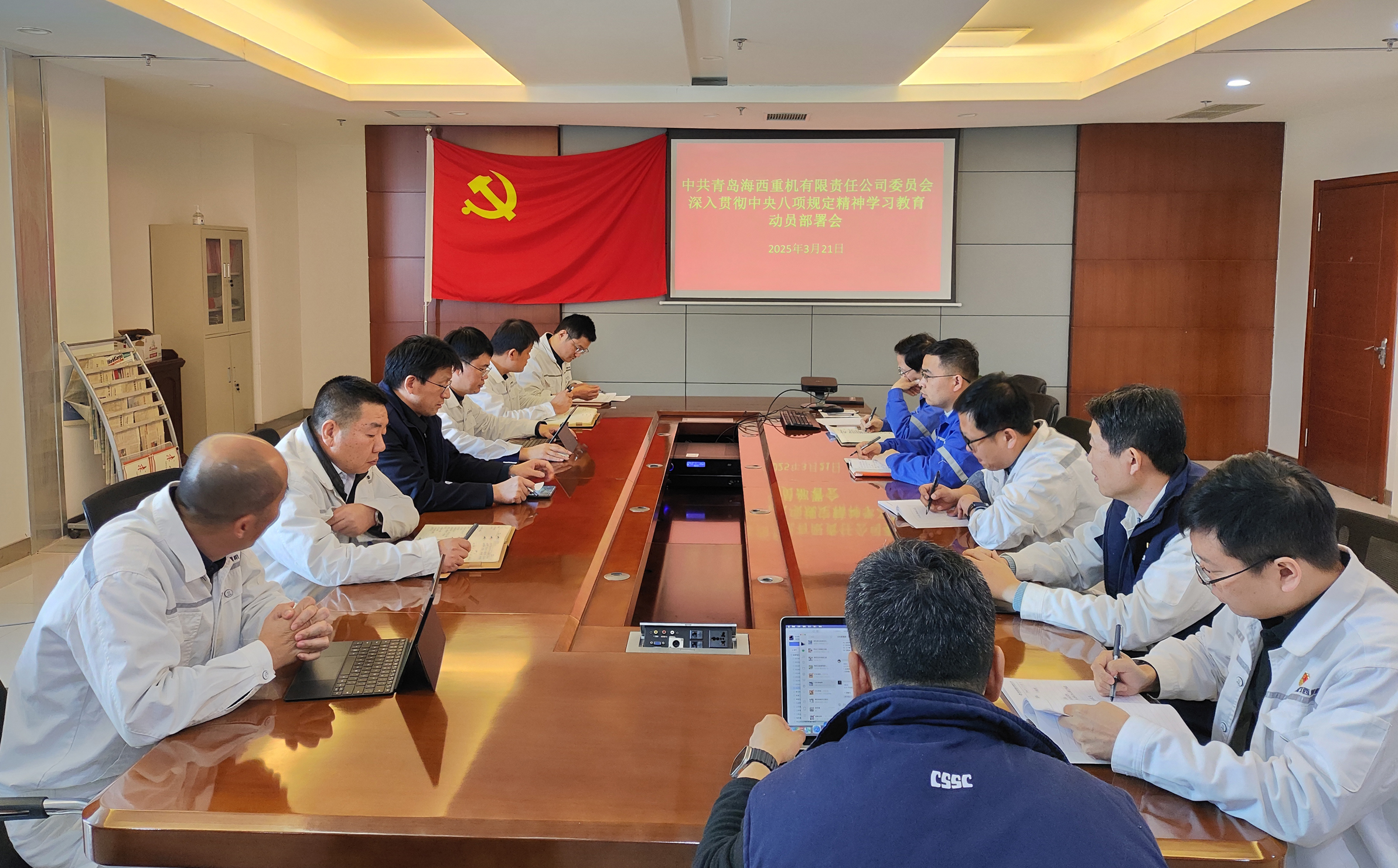 3月21日,海西重機黨委召開(kāi)深入貫徹中央八項規定精神學(xué)習教育動(dòng)員部署會(huì ),傳達學(xué)習上級單位有關(guān)會(huì )議精神和要求,研究部署貫徹落實(shí)工作。公司黨委委員、各黨支部書(shū)記參加會(huì )議。