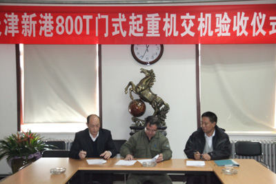 2012年4月7日,天津新港船舶重工第二臺800噸龍門(mén)吊交機驗收儀式在業(yè)主方隆重舉行。