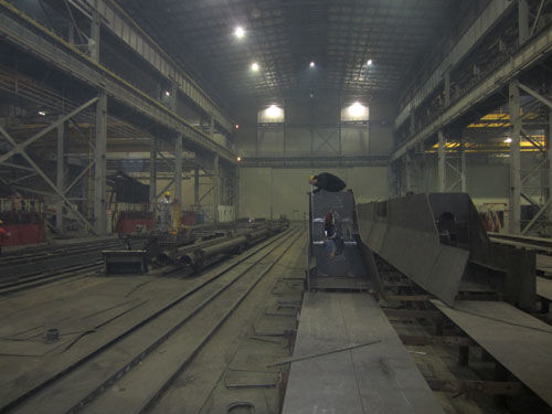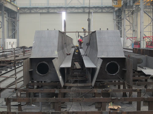 G126為一臺鹽城大豐港的集裝箱裝卸起重機,該項目13年1月初開(kāi)工,5月底交付使用,中間要跨越春節,工期異常緊張。為了確保該項目按期交貨,項目部、鋼構部、工藝部、品質(zhì)部在項目開(kāi)工前就進(jìn)行了多次溝通,明確了生產(chǎn)任務(wù)。工藝部總結以往經(jīng)驗,并積極采納承制單位建議,優(yōu)化了制作工藝。品質(zhì)部在加強關(guān)鍵點(diǎn)控制的基礎上,明確、簡(jiǎn)化了檢驗流程。鋼構部按時(shí)間分割生產(chǎn)節點(diǎn),嚴控人員及施工進(jìn)度,制定了一系列的保障措施。目前G126項目開(kāi)工僅半月時(shí)間,所有箱體結構均已裝配成形,部分構件如門(mén)框上橫梁已處于完工報檢階段,施工難度相對較大的前、后大梁已開(kāi)始承軌梁裝配作業(yè)。施工進(jìn)度基本處于計劃控制范圍。