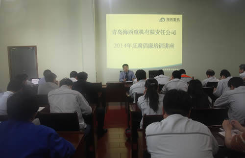5月22日,海西重機邀請黃島區人民檢察院對口部門(mén),在海西重機舉辦了2014年反腐倡廉培訓講座,公司黨委書(shū)記孫總參加了培訓講座。