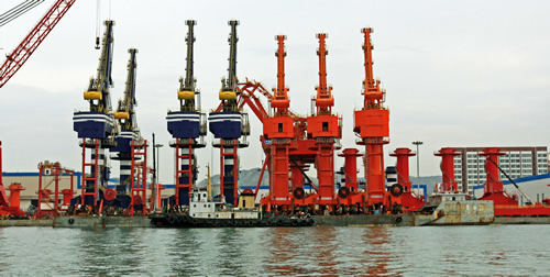 10:00,第一臺25t-37m門(mén)機按照既定方案順利安全滾裝上船!