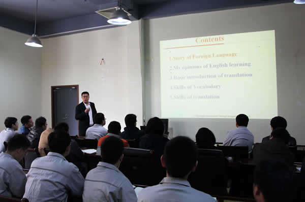 本屆英語(yǔ)培訓學(xué)習班邀請山東科技大學(xué)王成龍副教授擔任講師,共有36名員工參加培訓。培訓結合海西重機產(chǎn)品結構調整實(shí)際,內容涵蓋港口起重機械與海工平臺等兩大方面的系統專(zhuān)業(yè)知識,整個(gè)培訓將歷時(shí)6個(gè)月,分兩個(gè)學(xué)期進(jìn)行,培訓中期設置期中測評,培訓結束后還將組織進(jìn)行“聽(tīng)、說(shuō)、讀、寫(xiě)”綜合考核,確保培訓學(xué)習效果。